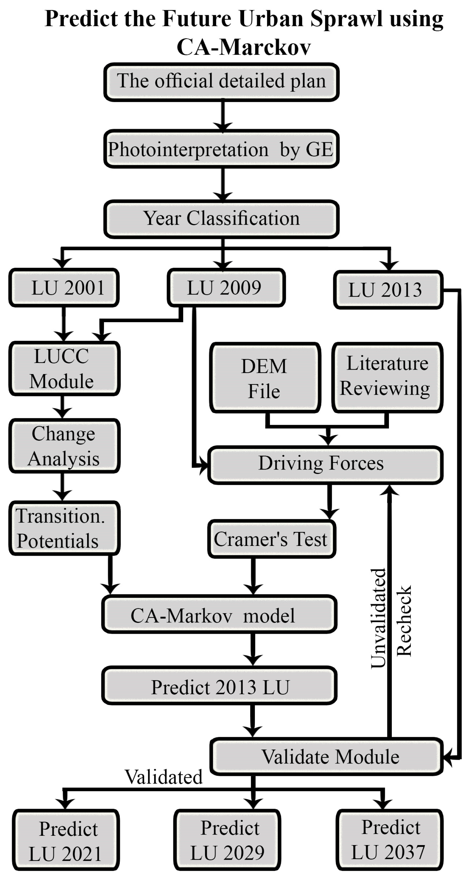 Prediction of future urban sprawl workflow.