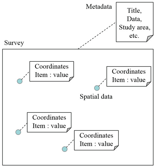 To efficiently record data in a sensing experiment, we define that the recorded information consists of two factors: basic information about the experiment which is called metadata and spatial data obtained for each recording point in the field. This definition is depicted in Figure 1.