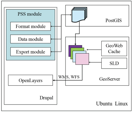 The GIS server provides a GIS engine and protocols for serving georeferenced map images, i.e., Web Map Service (WMS). This works in the back-end of the system and the interface to users is provided by the PSS module.
