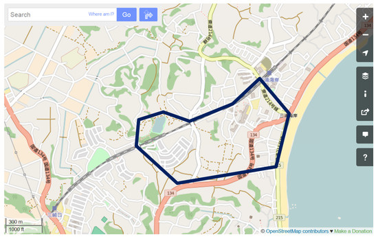 As an application study of the proposed framework, we undertook a growth survey of Kawazu-zakura tree (Prunus lannesiana Wils.) in Miura Peninsula, Kanagawa, Japan. The study area, shown in Figure 11, covers an area of about 500 m from Keikyu-Miurakaigan Station to Komatsugaike Park. The location and height of the Kawazu-zakura trees were adopted as survey items.