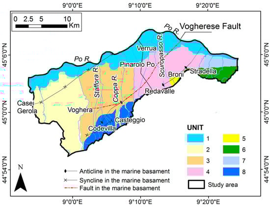 Engineering geological map of the plain area of the Oltrepo Pavese, modified from [].