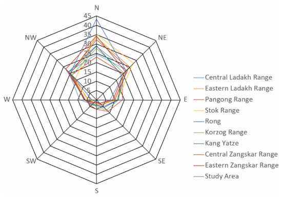Aspect of the glaciated area and perennial snow cover patches in the subregions of Ladakh.