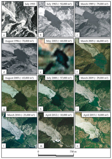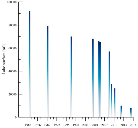 Evolution of lake surface during the 1983–2015 period as resulted from the analysis of the imagery database in Table 3.