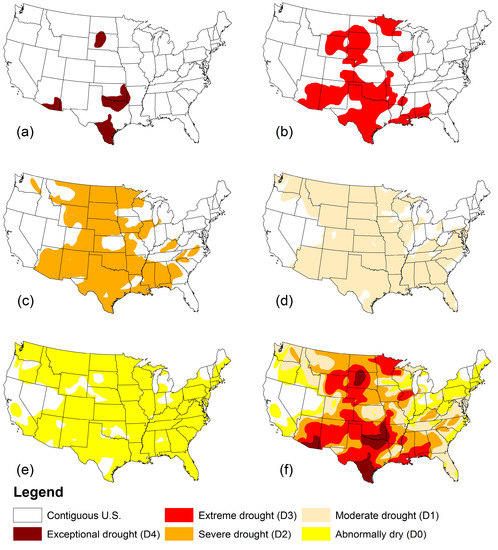 - The U.S. Drought Monitor. Available online: http://droughtmonitor.unl.edu/ (accessed on 16 July 2017).