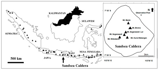 - PVMBG. Data Dasar Gunungapi Indonesia. Available online: http://www.vsi.esdm.go.id/index.php/gunungapi/data-dasar-gunungapi/532-g-bromo (accessed on 21 August 2015).