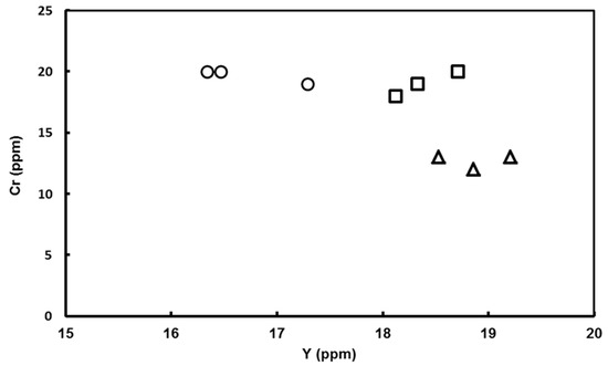 | Sample | Y (ppm) | Cr (ppm) | La (ppm) | Zr (ppm) | Ce (ppm) | V (ppm) |