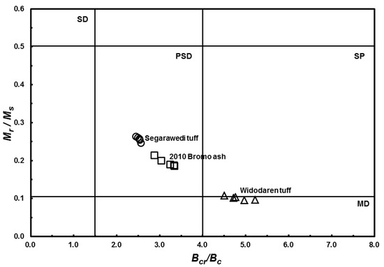 - Dunlop, D.J. Theory and application of the Day plot (Mrs/Ms versus Hcr/Hc): 2. Application to data for rocks, sediments, and soils. J. Geophys. Res. 2002, 107, 2057. [Google Scholar] [CrossRef]