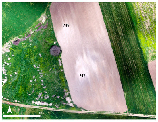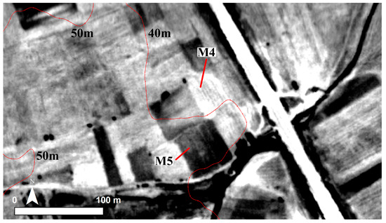 North–south running anomaly M5 (south) must delineate the limit of the site in the west. The feature slightly cuts the elevation counters, and thus, raises a doubt for its prehistoric origins. Nevertheless, the feature appears to be the continuation of the ditch-enclosure (C2) as documented in the geomagnetic dataset. Evaluated together, geophysics data, historic aerial photography, and RPAS imagery offer the most complete picture.