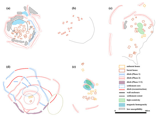 Site enclosures, locations of houses, preservation conditions, pyro-activities, deliberately avoided areas within sites and many other spatial and attribute data were gathered thanks to the workhorse of archaeological geophysics, i.e., the magnetometer. Furthermore, multi-sensor (multi+) geomagnetic prospection provided large area coverage due to instrument’s high data collection efficiency. It is now possible to explore geomagnetic landscapes and locate archaeological features in much wider contexts [20]. On the other hand, one can further argue that it is only possible through the manifold approach (multiple methods) to truly investigate differences and commonalities in inter-site settlement patterns.