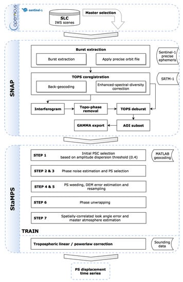Multi-temporal InSAR analysis incorporated by the SNAP & StaMPS processing chain.