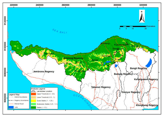 Statistical results of the stability index of landslide hazards in the Buleleng district.