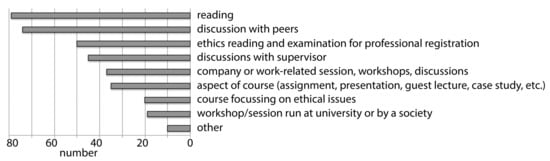 Introduction of respondents to ethical aspects, sorted by incidence.