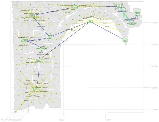 As we can see, the forms of US are the result of either natural (deposition or erosion) or human (construction or destruction) actions. Their position on the entire wall, as well as the physical and stratigraphical relationships with the other US are necessary to detect the relative chronological sequence of the entire building (and, when comparing all structures, the relative chronological sequence of the entire site). The characteristics that distinguish each US of the upstanding building are mainly the stones’ lithology, the ashlar blocks’ dimension and shape and the kind and the quantity (or also the absence) of the mortar. Of course, it is extremely relevant to note the physical relationships between the different US (see Figure 9). Therefore, we need to survey all the dimensional and technological data and also, of course, to survey the position of all the US.