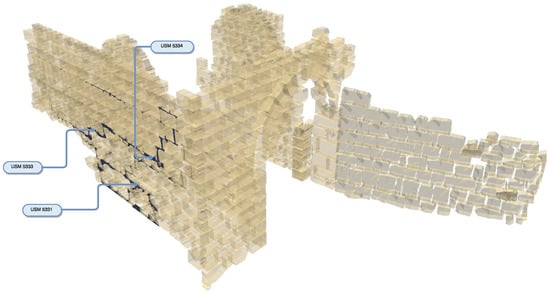 The main works on US formalization and visualization have been done as part of archaeological digs. The latest works include ADS (Archeology Data Service, U.K.) and ISTI-CNR, Italy, where archaeological dig reports, 3D surveying, 3D visualization on the web and the Harris formalism can be found in the same tool [44]. Indeed, the Harris formalism has been developed for archaeological excavation and a transposition on an upstanding structure, in a real 3D context, with stratigraphic units still functional at the time they were studied, which implies the development of many new issues to be considered, as well as an accurate formalism.