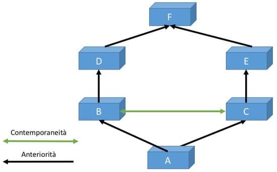 The proposed charts (Table 3 and Table 4) aim to create an interconnection table between temporal intervals (Allen) and temporal relationships (Harris). As we can see, there are some temporal relationships that we are unable to better refine than using subsequent and anteriority (without any other specification proposed by Allen’s interval relations). On the other hand, the most important criticality concerning the Harris matrix’s temporality is the lack of expression of duration.