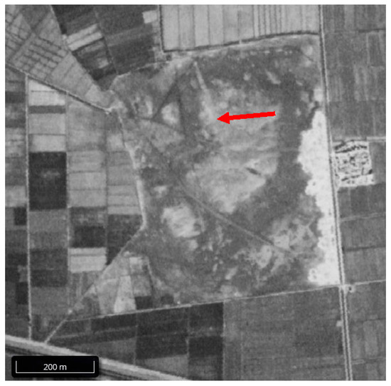 Kom el-Barud: Located in the western Nile Delta, the site measures 375 m × 250 m, composed of a lighter colored sandy silt, but 95% is covered with vegetation. On a late October 2011 image, multiple structures are evident through the vegetation. Previous survey work has shown the site dates to the Greco-Roman and Late Roman periods (332 BC–640 AD) [26] (Figure 15). The site appears unchanged in 50 years.