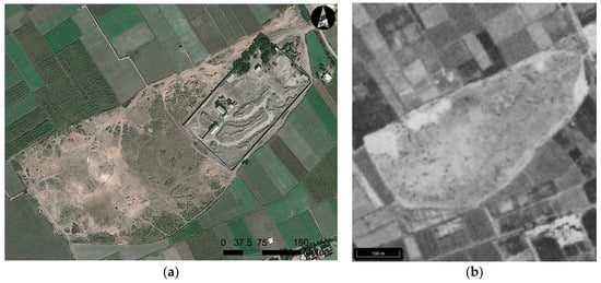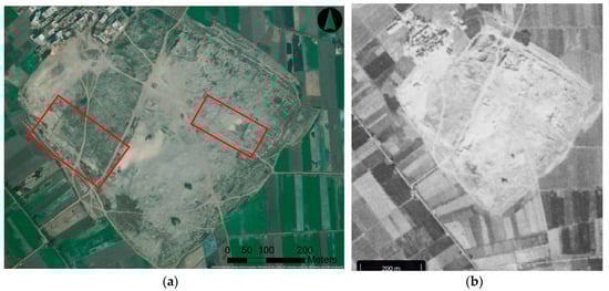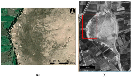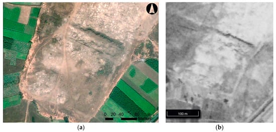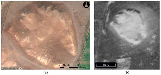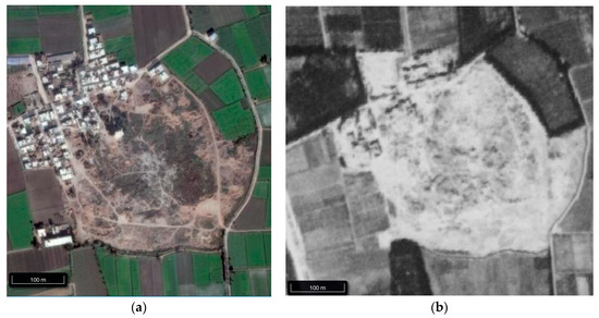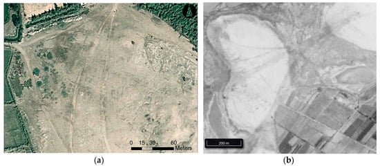 (a) The site of Abu Mitawi. Image courtesy Google Earth; (b) 1968 CORONA image. Image courtesy of the Center for Advanced Spatial Technologies, University of Arkansas/U.S. Geological Survey.
