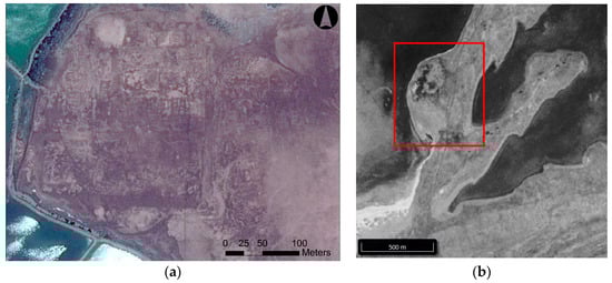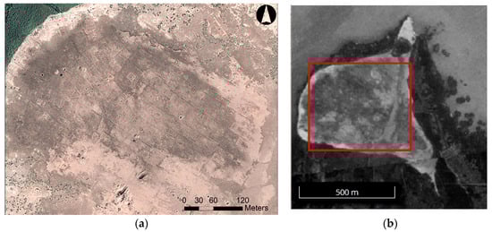 (a) The site of Abu el Humar. Image courtesy Google Earth; (b) 1968 CORONA image. Image courtesy of the Center for Advanced Spatial Technologies, University of Arkansas/U.S. Geological Survey.