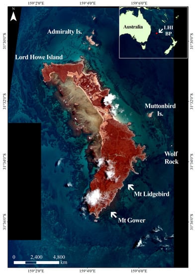 Lord Howe Island and Ball Pyramid are remote, pristine islands which are located 600 km offshore of the east coast of the Australian mainland (Figure 1). These islands are internationally valued for their high biodiversity and endemism, and for possessing the southernmost coral reef in the Pacific Ocean, which fringes the west coast of Lord Howe Island [23,24]. The islands are protected by state and Commonwealth marine parks and reserves, and have been World Heritage listed since 1982.