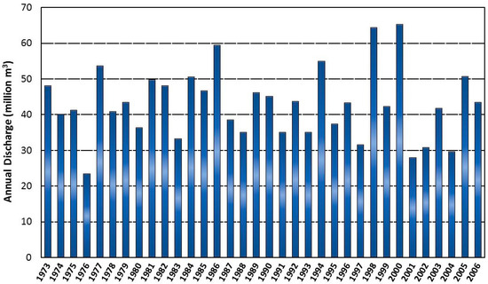 The estimated mean annual dynamic reserves of the aquifer (Figure 7) is calculated at about 43 × 106 m3, equivalent to the mean annual spring discharge.