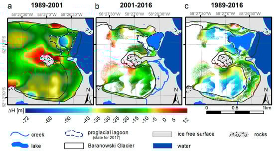 Sziło, J.; Bialik, R.J. Recession and Ice Surface Elevation Changes of Baranowski Glacier and Its Impact on Proglacial Relief (King George Island, West Antarctica). Geosciences 2018, 8, 355. https://doi.org/10.3390/geosciences8100355