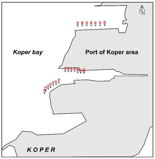 The geochemical characteristics of sediment from the Gulf of Trieste (North Adriatic Sea, Italy) have been studied in detail by several groups [13,14,15,16,17,18,19,20,21,22,23] over a significant period of time. Few studies, however, have been conducted on the adjacent Adriatic sediments of the Koper Bay, especially from the Port of Koper [22,23,24]. Thus, precisely defined anthropogenic/geogenic character, heavy metal mobility potential, the application of sediment quality guidelines (SQG), and eligible statistical analyses in Koper Bay sediments, was undertaken for the first time.