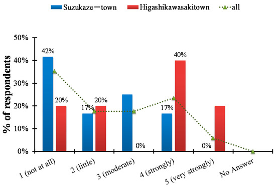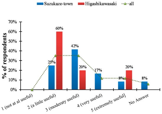 Distribution of respondent regarding whether the information they obtained on the storm surge was useful (n = 5 for Higashi-Kawasaki town, n = 12 for Suzukaze town).