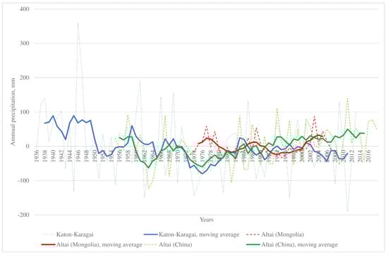 - Sevast’janov, V.V.; Shantykova, L.N. Characteristics of the field of annual precipitation in the Altai Mountains according to glacial climatic parameters. Bull. Tomsk State Univ. 2001, 274, 63–69. (In Russian) [Google Scholar]