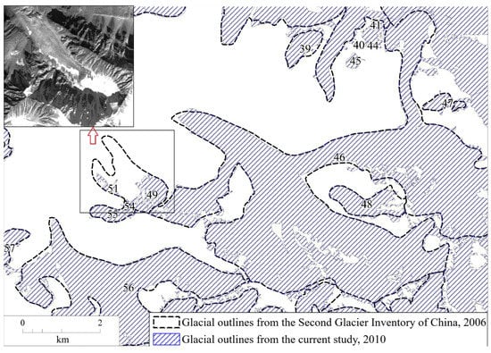 - Guo, W.; Liu, S.; Xu, J.; Wu, L.; Shangguan, D.; Yao, X.; Wei, J.; Bao, W.; Yu, P.; Liu, Q.; et al. The second Chinese glacier inventory: Data, methods and results. J. Glaciol. 2015, 61, 357–372. [Google Scholar] [CrossRef]