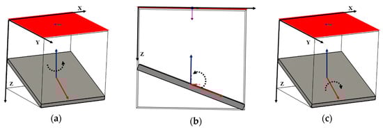 Simplified sketch of the employed nomenclature: (a) Strike angle; (b) dip angle; and (c) azimuth angle.
