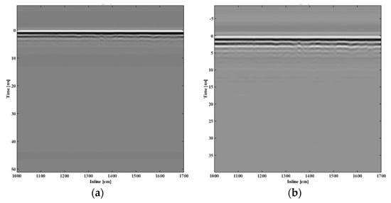 Resulting GPR profiles after each processing step are shown in Figure 5.