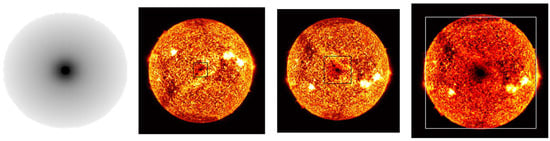 The most tested design consists of N identical evenly spaced ‘petals’ as shown in Figure 7 and Figure 8. These petals are wedges of the circle whose width varies with radius such that the fractional angular extent of the occulter at a given radius is the attenuation profile [,].