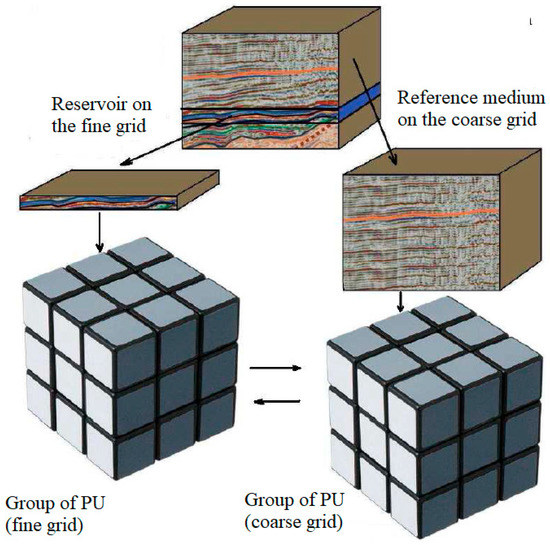 The approach on the base of the locally refined grids performs computations on different scales and needs the use of different seismic models: parameters of a reference medium given on a coarse grid and a detailed characterization of the immersed reservoir on a fine grid (see Figure 1). It is very important that there is absolutely no necessity to fit the interior structure of these two media—they just need to be uploaded as two different files containing the values of elastic parameters and density on two different grids. The coordinates of the opposite ends of its principal diagonal determine reservoir position. Thus, the formation of the multiscale model is to load two (or N 2, independence of the specific problem) files and the six (or 6N) digits that define the position of the target reservoir. Subdomains with both coarse and fine grids are again decomposed into elementary subdomains being assigned to individual Processor Unit (PU). Now these PU form two (or N 2) groups for grids of different scales, and special efforts should be applied in order to couple these groups.