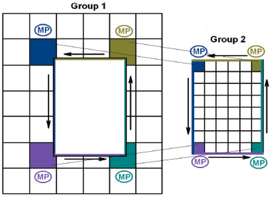 Let us explain now how different scales are coupling with each other. For the sake of simplicity, we consider the data exchange between two groups: the first group with a coarse grid and the second one with a fine grid.