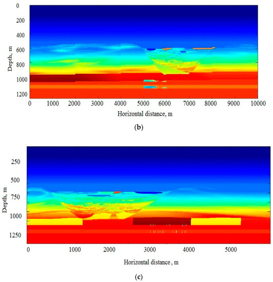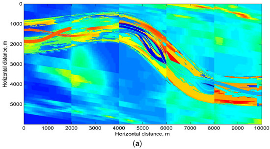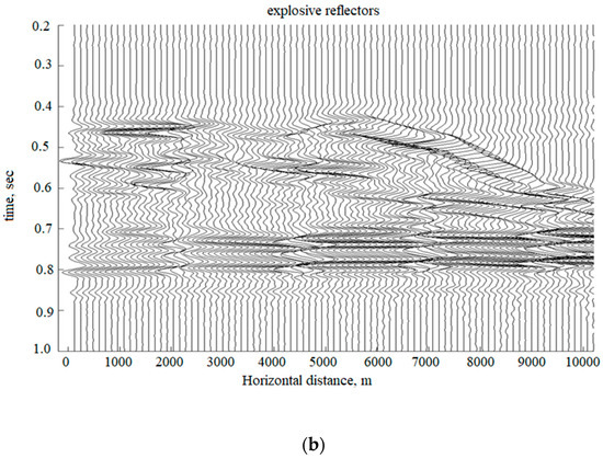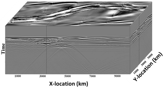 - Carcione, J.M.; Boehm, G.; Marchetti, A. Simulation of CMP seismic sections. J. Seism. Explor. 1994, 3, 381–396. [Google Scholar]