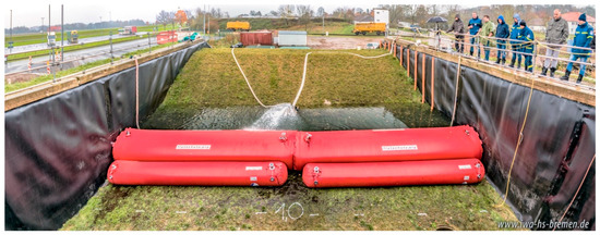 Impoundment using an SBRS—FLUTSCHUTZ-Doppelkammerschlauch—in the IWA test facility.