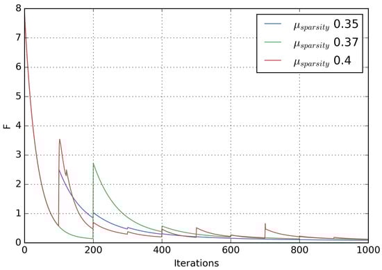 In Figure 6, we can see the dependencies of the fitting curve (F) from different values of regularizing terms ().
