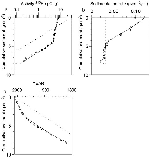 - Smith, J.N. Why should we believe 210Pb sediment geochronologies? J. Environ. Radioactiv. 2001, 55, 121–123. [Google Scholar] [CrossRef]