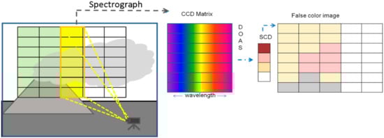 - Bobrowski, N.; Hönninger, G.; Lohberger, F.; Platt, U. IDOAS: A new monitoring technique to study the 2D distribution of volcanic gas emissions. J. Volcanol. Geotherm. Res. 2006, 150, 329–338. [Google Scholar] [CrossRef]