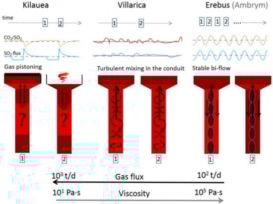 - Burton, M.; Allard, P.; Muré, F.; La Spina, A. Magmatic gas composition reveals the source depth of slug-driven Strombolian explosive activity. Science 2007, 317, 227–230. [Google Scholar] [CrossRef] [PubMed]