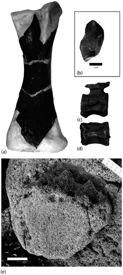 - Naish, D.; Martill, D.M. Dinosaurs of Great Britain and the role of the Geological Society of London in their discovery: Basal Dinosauria and Saurischia. J. Geol. Soc. Lond. 2007, 164, 493–510. [Google Scholar] [CrossRef]