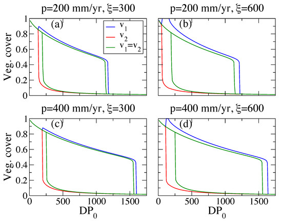 43]. For the sake of clarity and simplicity, we used the simplest model version, i.e., the spatially independent model with an ordinary differential equation for vegetation cover, ignoring the effect of biogenic crust [