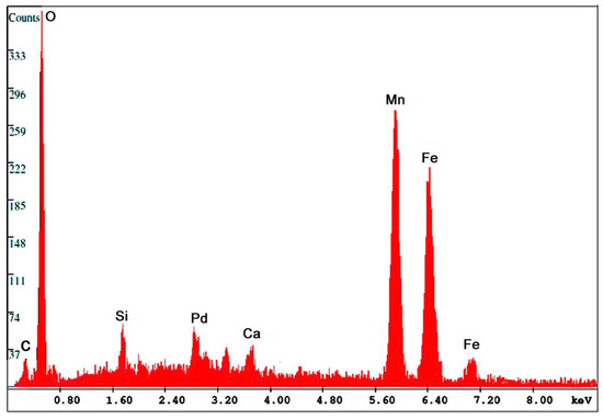 SEM/EDS spectrum for Fe-Mn oxide fossil wood from Virgin Valley, Nevada, USA.