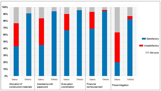 Nevertheless, survey results revealed a higher satisfaction rating with the mitigation and prevention measures among Edeytsy residents (Figure 6). Participant observations revealed disappointment among the residents in Galena and other rural riverine communities in Alaska regarding the absence of mechanical ice-jam mitigation efforts. Watching their communities ravaged by ice floes, people hoped for prevention efforts. In addition to the placebo effect, mechanical mitigation efforts might help reduce or even eliminate adverse impacts of spring floods. However, further comparative analysis is needed to determine the costs, benefits, and effectiveness of the mechanical ice jam mitigation efforts.