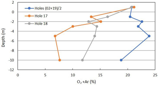 Oxygen+Ar profile for combined background locations and Locations 17 and 18 in Fault Zone 2. See Figure 5 for the locations.
