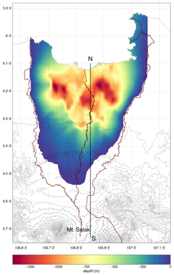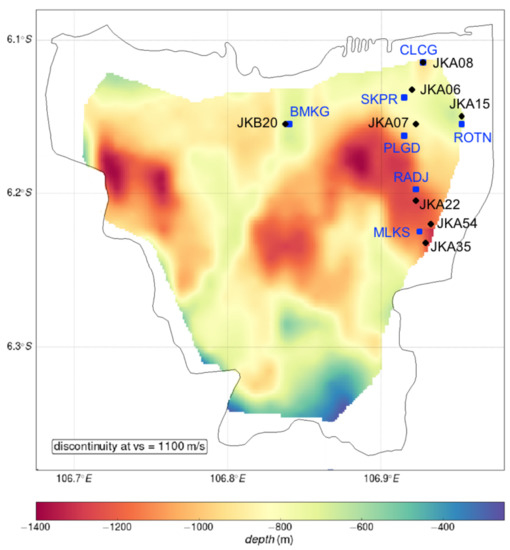 Oil prospecting studies using the seismic reflection method have succesfully recognized five principal oil reservoir groups within the North West-Java Basin. These oil caps are (1) Eocene–Oligocene fractured volcanics (Jatibarang Volcanics), (2) Oligocene–Lower Miocene deltaic sandstones (Talang Akar Formation), (3) Lower Miocene reefs (Baturaja Formation), (4) Lower–Middle Miocene sandstones (Upper Cibulakan Formation), and (5) Middle-Upper Miocene carbonates (Parigi Limestones and Upper Cibulakan Formation) (Kingston [32]). On the top of these reservoirs, the Parigi, Cibuluh and Quaternary formations were deposited successively, with a hiatus due to decreasing sea level separating these formations. From these data, it can be inferred that the Jakarta Basin, also known as the Ciputat Basin, is part of the North West-Java Basin in which the basement is composed of carbonates of the the upper Parigi formation deposited in the Middle-Upper Miocene (see Figure 6 in Putra et al. [33]).