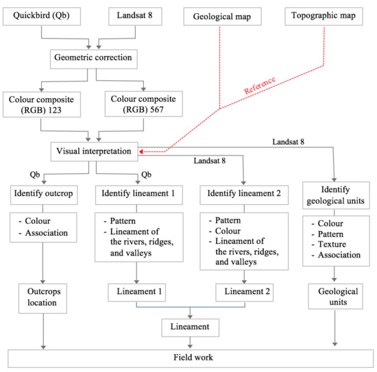 Qa and Qmi are robust to differentiate from Landsat 8 because both units have the similar visual characteristic of morphology, colour, texture, and relief. However, the association concept can be used to identify the Qa deposits. As formed from the denudation processes, Qa is mostly accumulated in the foot slope of denudation hills. Thus, Qa is often referred to the narrow flat areas which are located in the border areas between mountainous and flat areas. Additionally, it has bad sortation of materials and high clay content, due to the colluvial processes near the denudation hills.