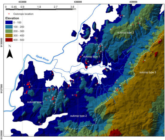 Based on the outcrop analysis, three types of outcrops (Outcrop type 1, 2 and 3) were found in the study area and its surrounding (
