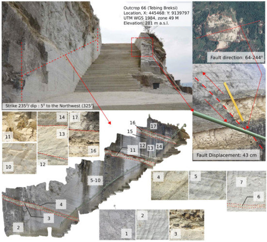 7]. However, both of these faults are susceptible to the earthquake movement. The surrounding areas will receive a relatively high earthquake shaking due to the movement of both faults. The fault evidence of the Outcrop 65 can be seen in