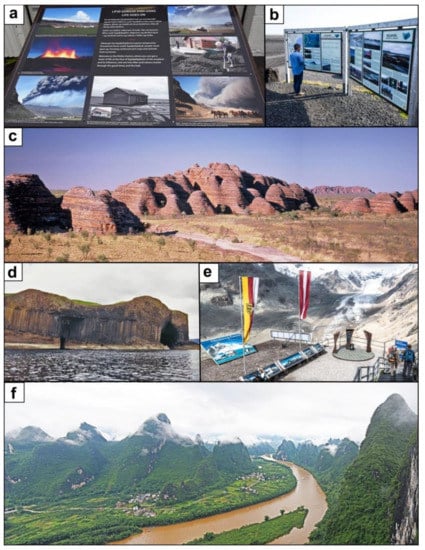 - Newsome, D.; Dowling, R. Geoheritage and geotourism. In Geoheritage. Assessment, Protection, and Management; Reynard, E., Brilha, J., Eds.; Elsevier: Amsterdam, The Netherlands, 2018; pp. 305–321. [Google Scholar]